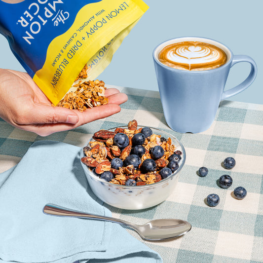 We make granola that actually eats like real food. Each batch is over 40% nuts and seeds, sweetened naturally with wildflower honey or maple syrup, and baked in small batches for that perfect salty-sweet crunch. No fillers, no weird stuff — just the good stuff.